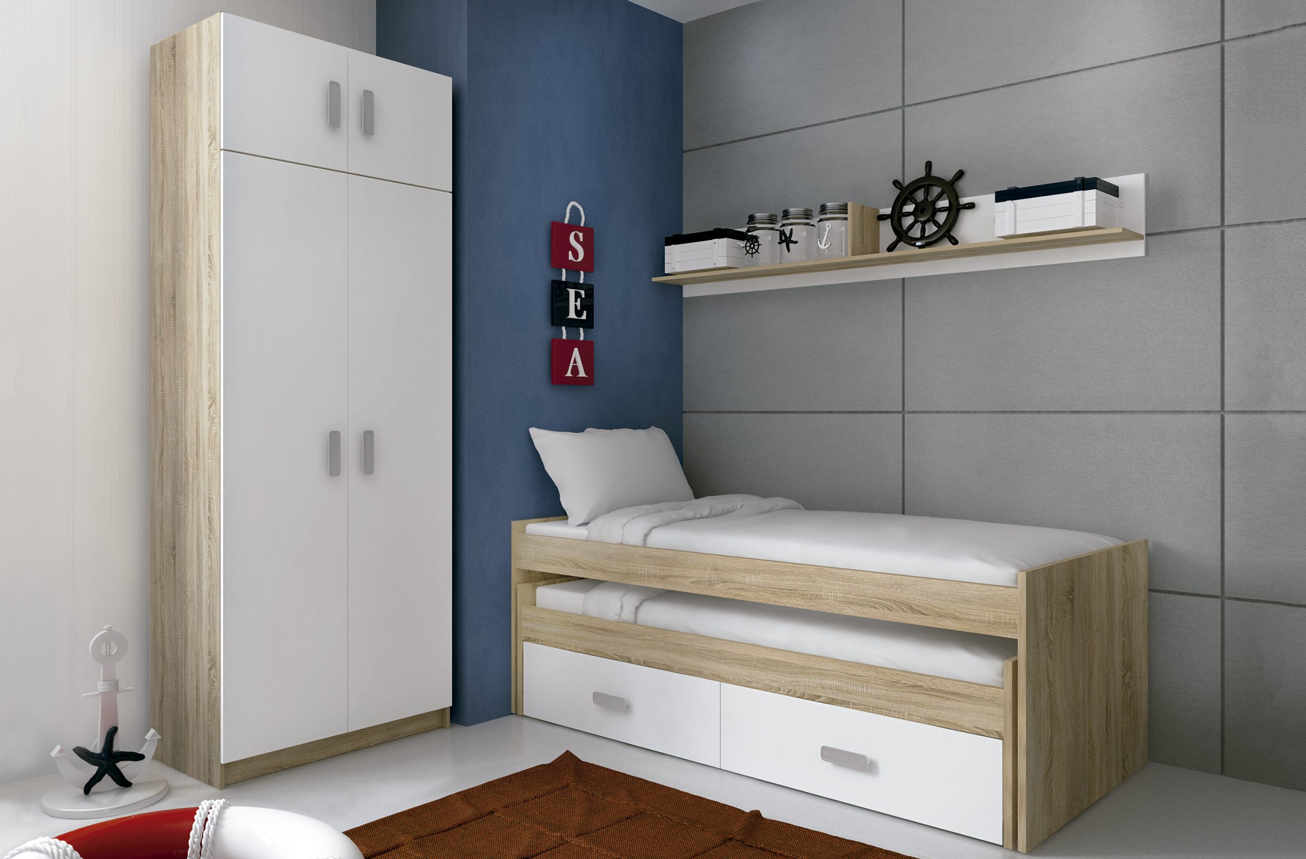• Acabados disponibles: roble-grafito, blanco-roble, azul-gris (consultar combinaciones)